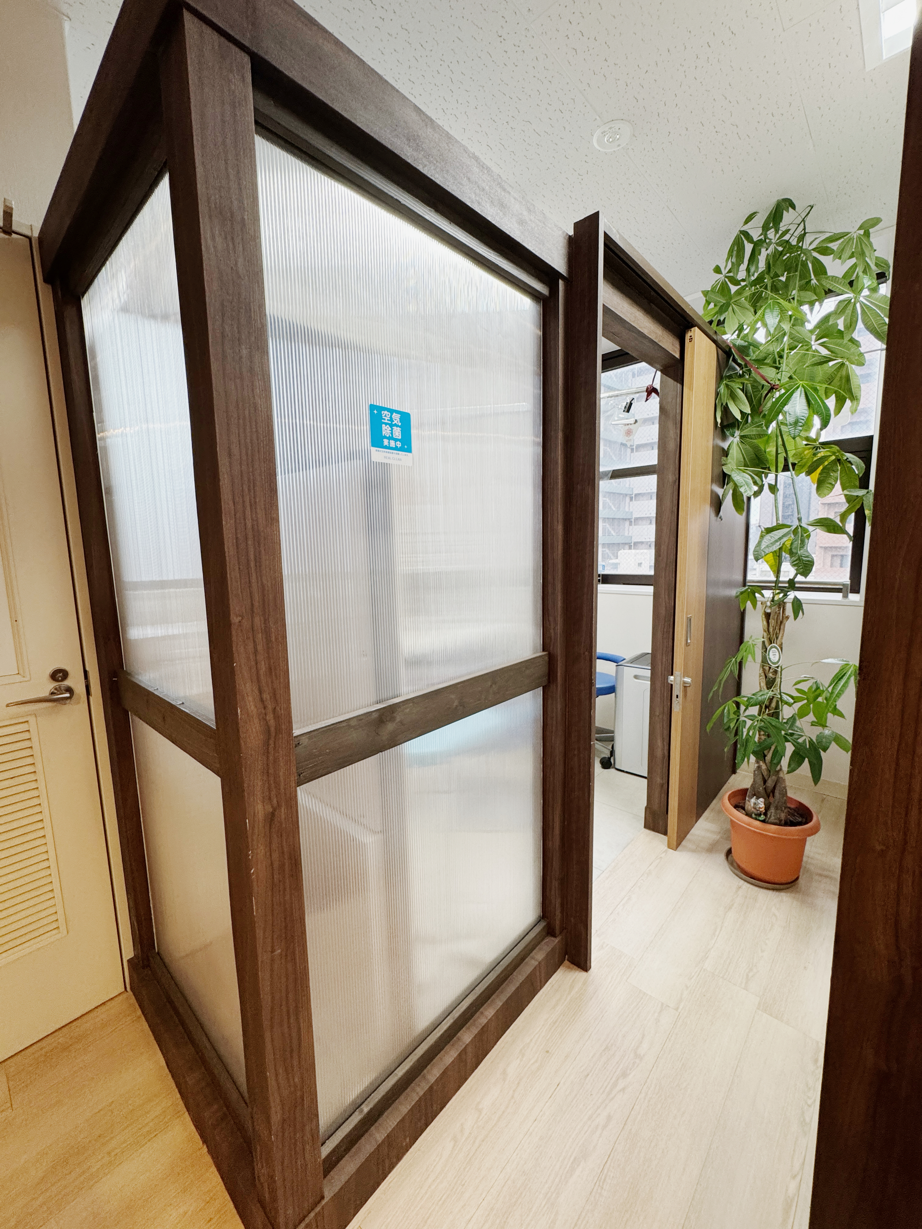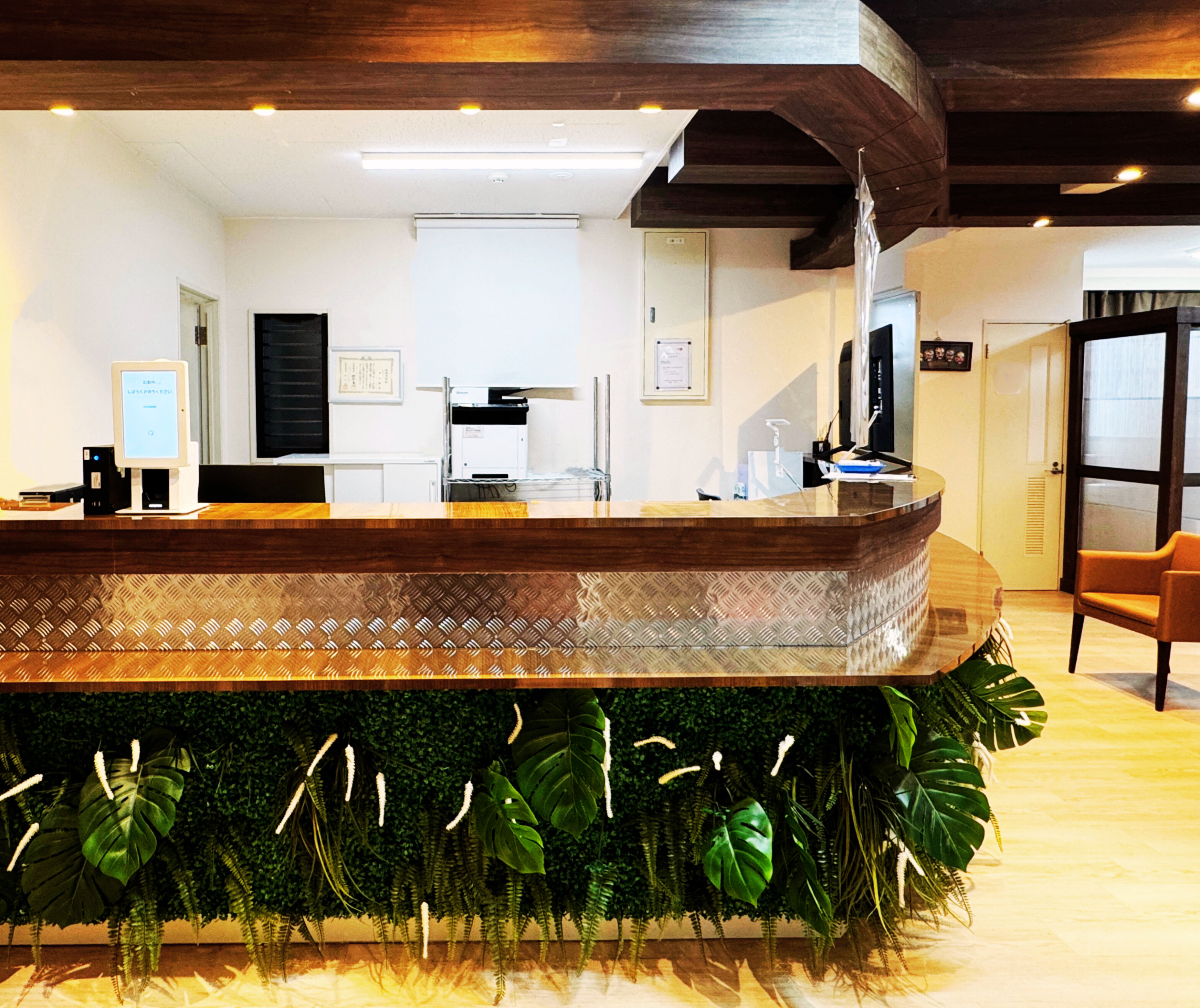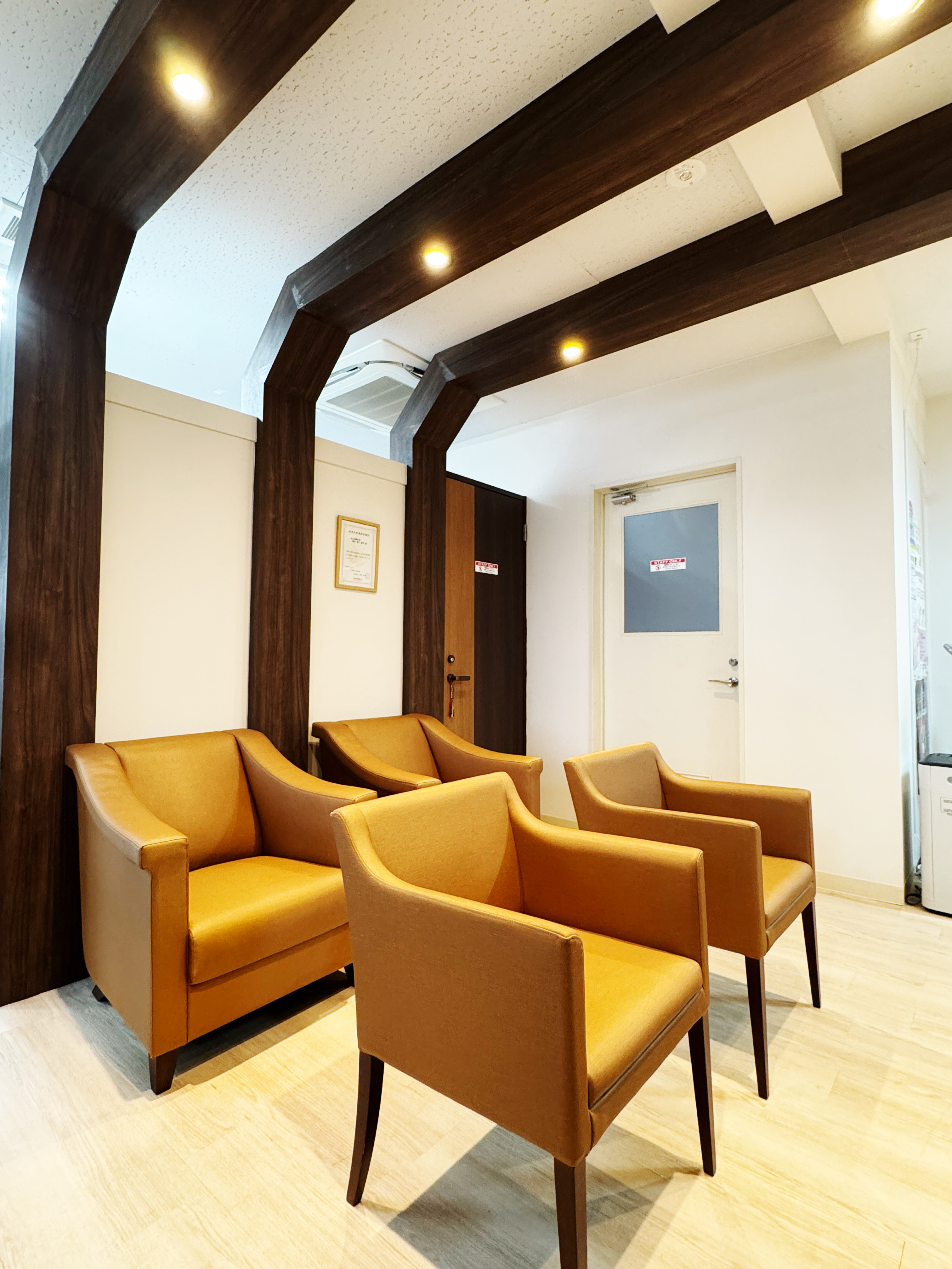 木のぬくもりと優しい光に包まれた、リラックスできる空間です。ゆったりとしたソファをご用意し、診察までの時間を快適にお過ごしいただけます